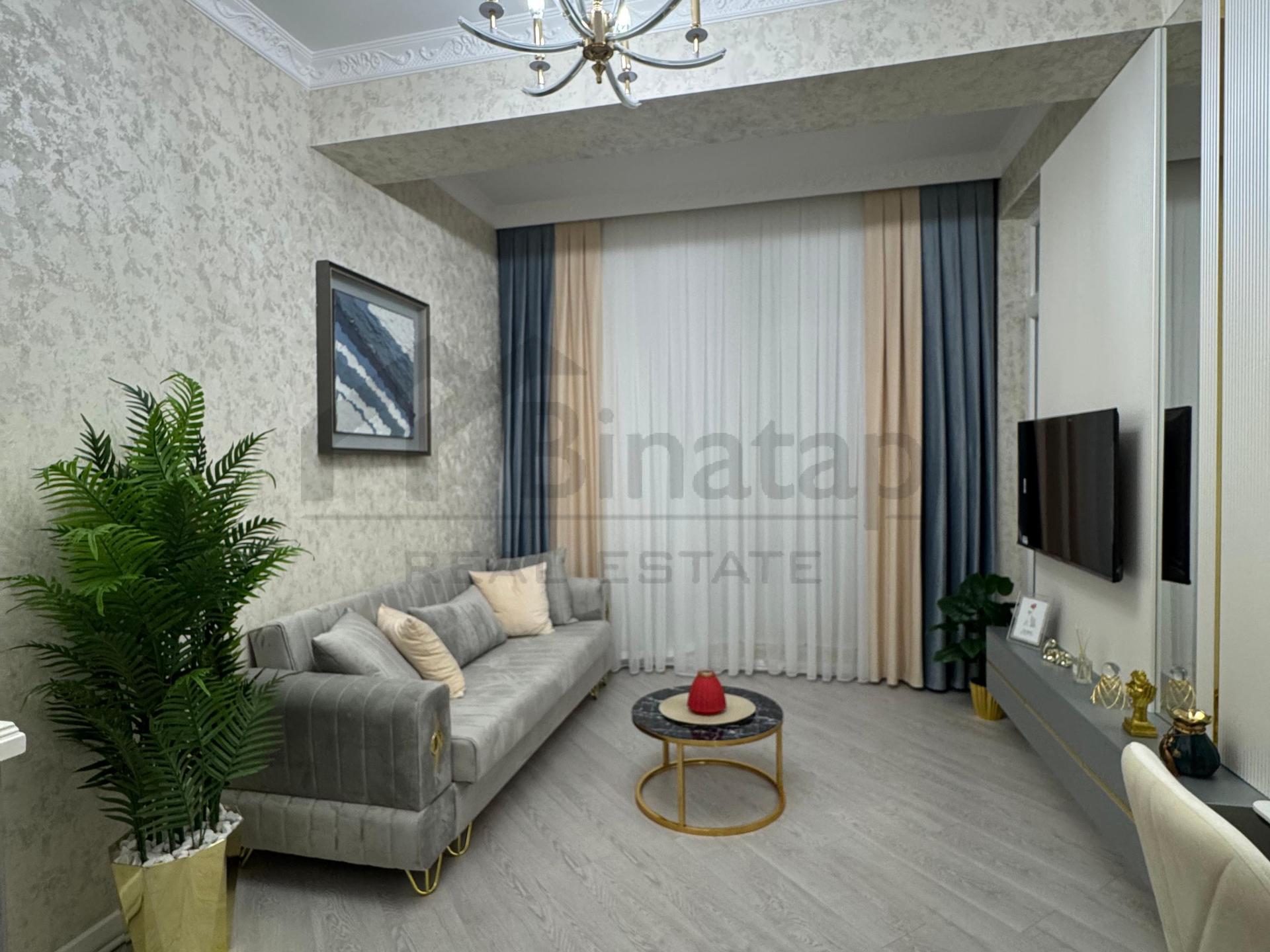 - Təsviri: Təmirdən sonra yaşayış olmayıb. 1 otaqdan 2 otağa düzəlib. Əşyalı satılır. Qaz su daimidir, kombi sistemi. Sürətli liftləri, böyük mühafizə olunan həyəti, uşaq meydançası, yeraltı qarajı var. Şirkət haqqı 1% (alıcıdan).