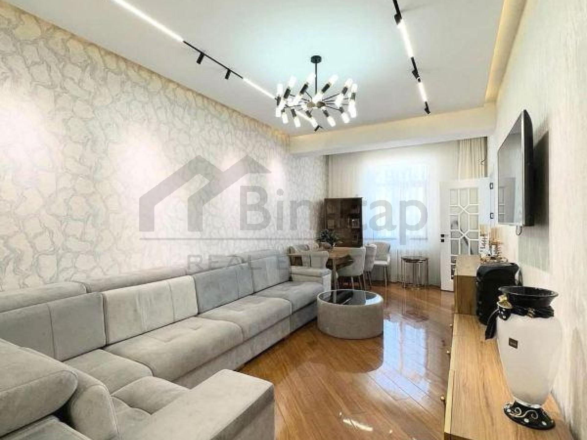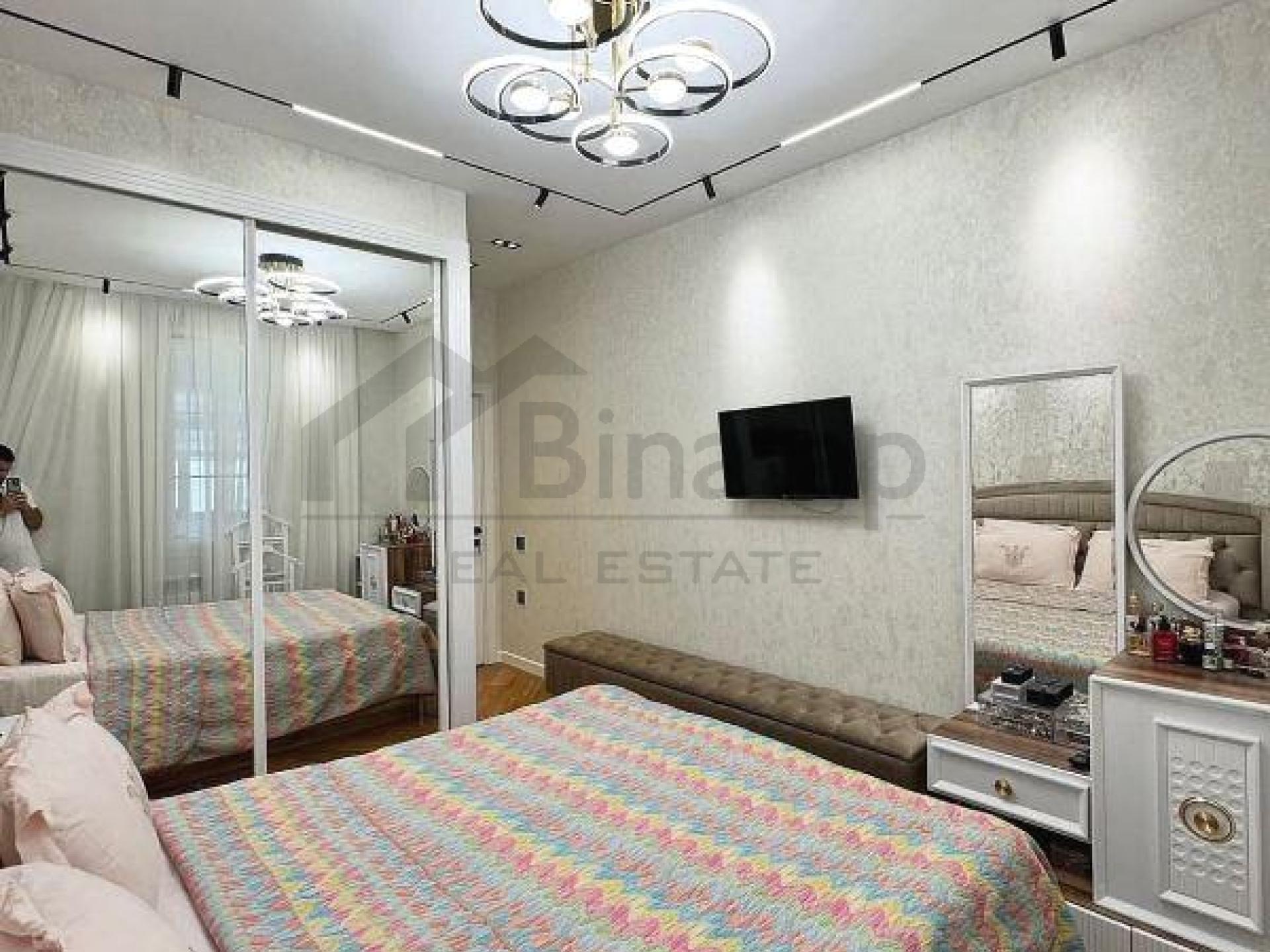 - Təsviri: Əla təmirlidir. Əşyalı satılır (texnika xaric). Qaz su daimidir, kombi sistemi. Binanın geniş qapalı həyəti, uşaq meydançası, parkingi, ətrafda çox sayda marketlər və fitness zalı yerləşir. Şirkət haqqı 1% (alıcıdan).