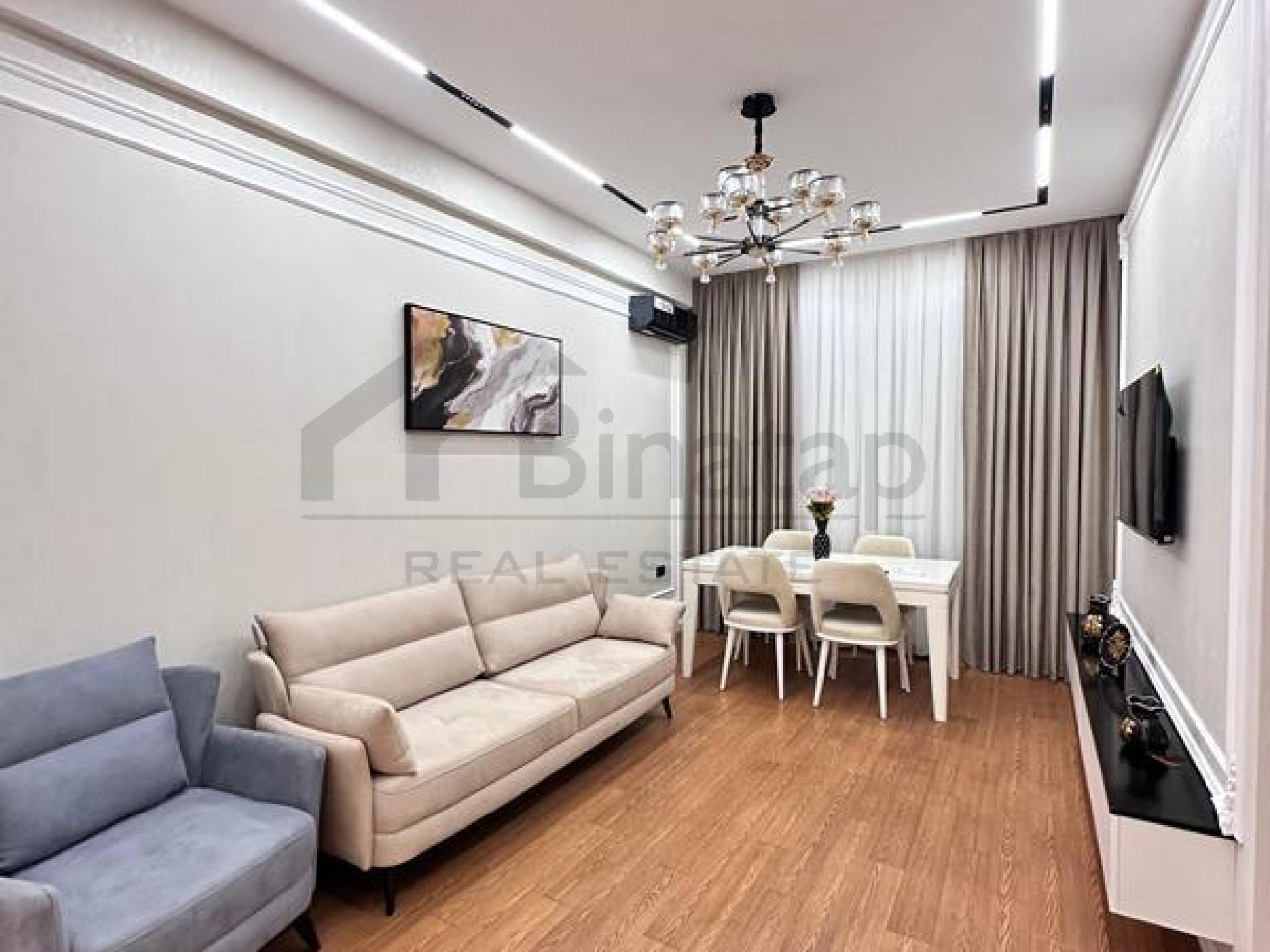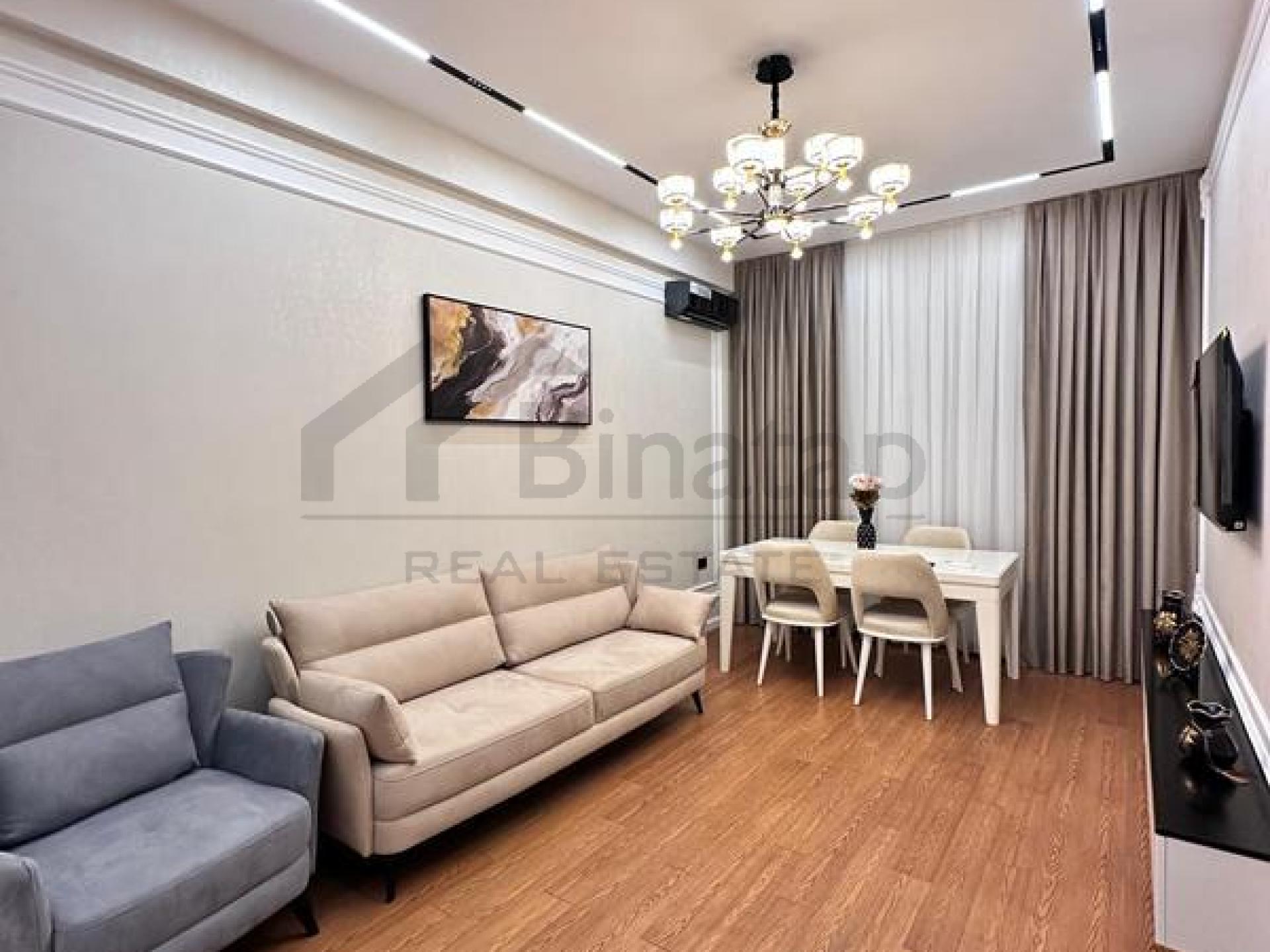 - Təsvir: Yeni təmirdən çıxıb, yaşayış olmayıb. Əşyalı satılır. 24 saat mühafizə olunan böyük bağlı həyəti, video müşahidə, səssiz sürətli Mistubishi liftləri, 3 mərtəbəli yeraltı qarajı, uşaq oyun və futbol meydançası. Şirkət haqqı 1% (alıcıdan).