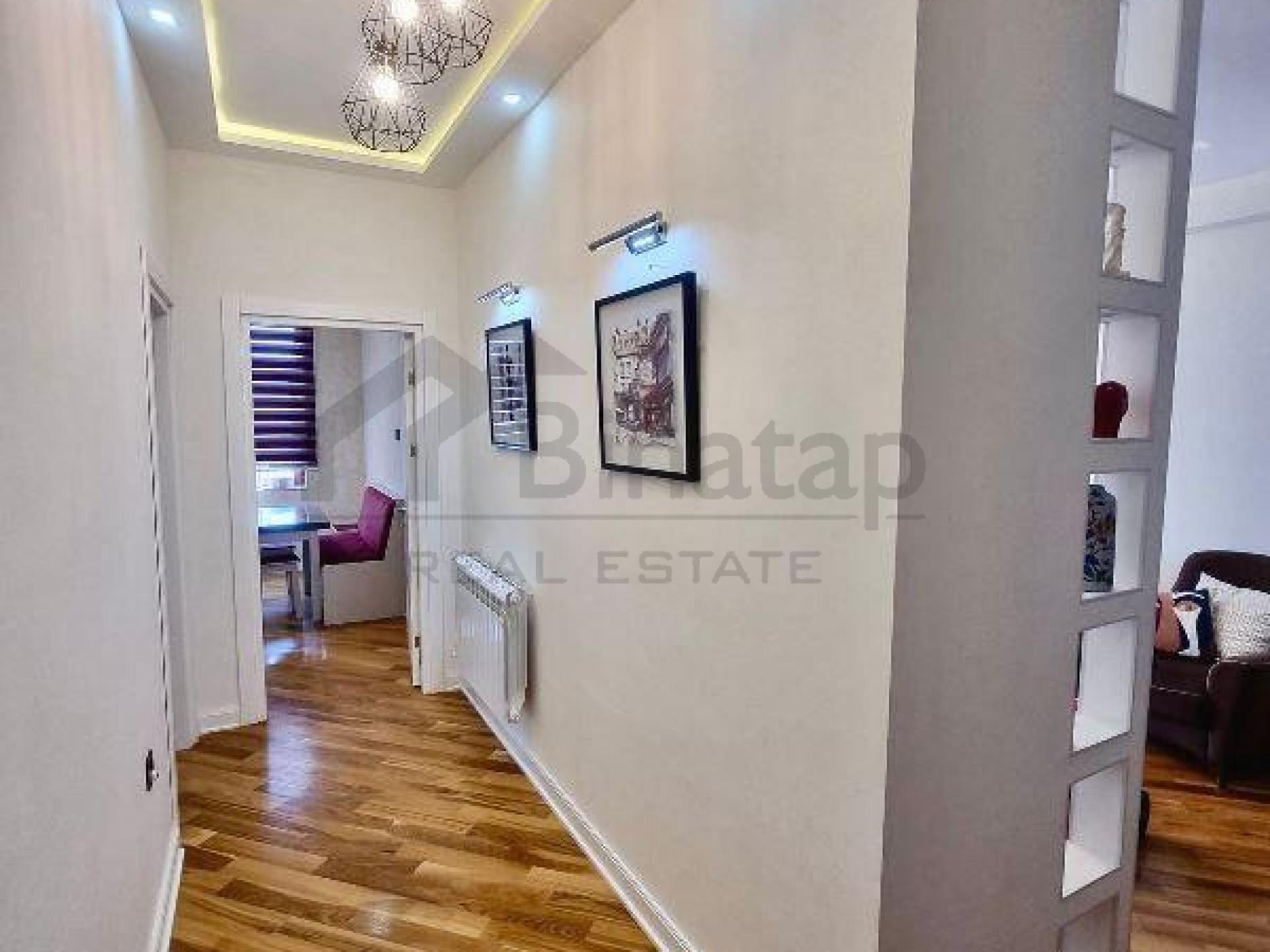 - Təsviri: Yüksək keyfiyyətli materiallarla bahalı təmir olunub. Şəhərə və dənizə gözəl mənzərəsi var. Parket döşəmə, Bosch mətbəx texnikası, dəhliz və yataq otağında divara quraşdılırmış qarderob, 3 otaqda kondisioner (Siemens, Vestel, Samsung), xüsusi sifarişlə hazırlanmış qapılar. Kombi sistemi, əlavə binada mərkəzi isitmə sistemi var, qaz su daimidir. Mənzil əşyalı və əşyasız satıla bilər. Binada 3 lift, girişində FS fitness&spa zal (hovuzlu) yerləşir. Mənzildə təmirdən sonra il yarım yaşayış olub,...