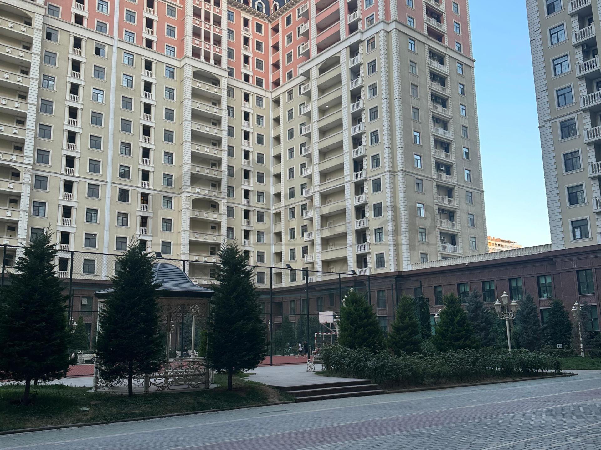 - Təsvir: Yeni təmirlidir, yaşayış olmayıb. Əşyalı satılır. 24 saat mühafizə olunan böyük bağlı həyəti, video müşahidə, səssiz sürətli Mistubishi liftləri, 3 mərtəbəli yeraltı qarajı, uşaq oyun və futbol meydançası və s. Şirkət haqqı 1% (alıcıdan).