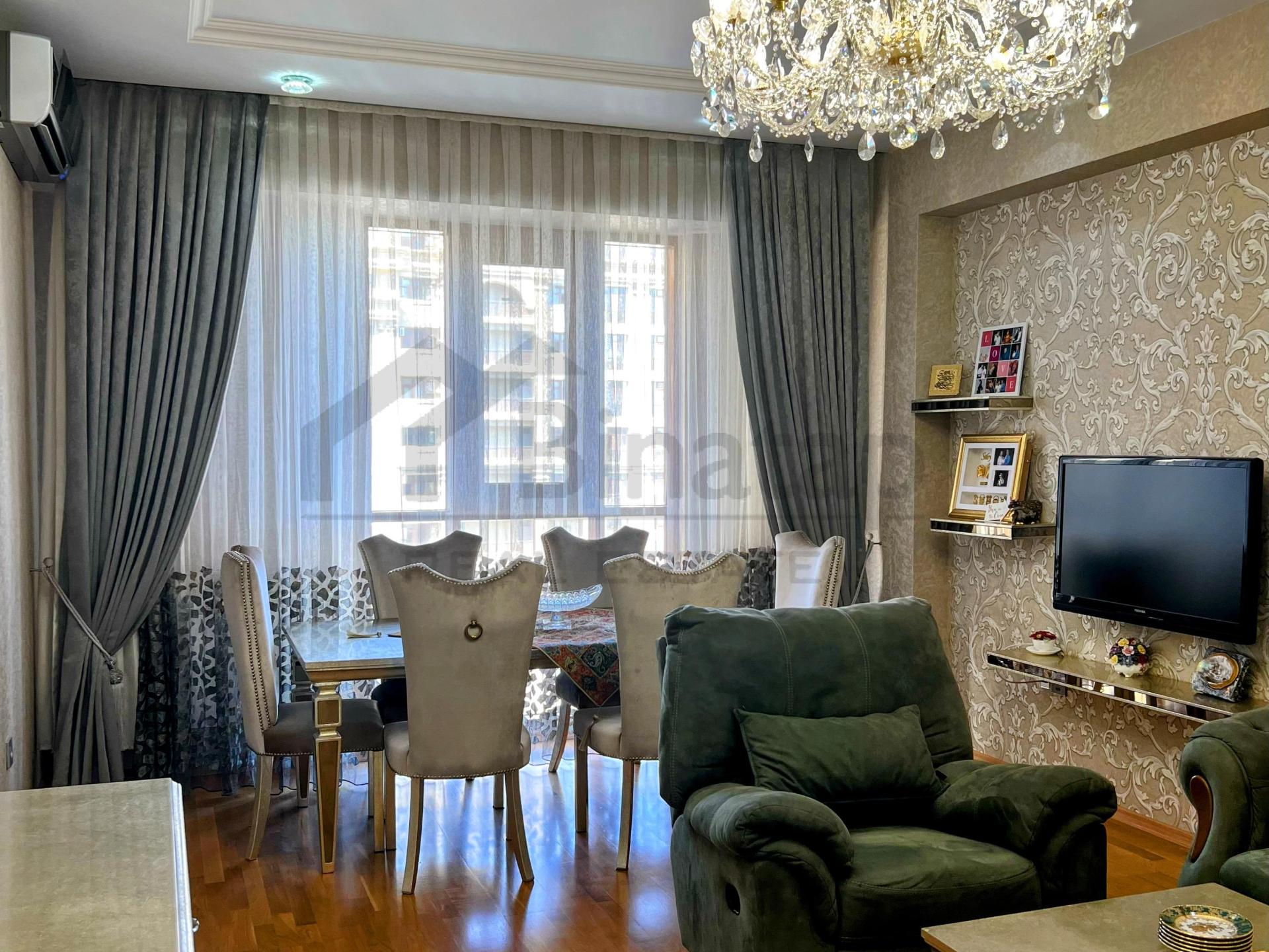 Səbayil rayonunda- Kristal Absheron Bayil Səbayil rayonunda, 10/16-ci mərtəbəsində ümumi sahəsi 116 kv 3 otaqlı, kupçalı, tam yaşayışlı mənzil!!! Qaz, su və işıq daimidir. Evdə ümümi daxil olan suya italiyan filtir sistemi quraşdırılıb. İstilik sistemi italyan kombidir. Mənzil ev sahibi tərəfindən elavə təmir edilib və təmirində keyfiyyətli bahalı materiallardan istifadə olunub. Klassik italyan mətbəx mebeli, Franke italyan markalı avadanlıqı, zövqlü pərdələr, lüsturlar, əlavə şkaflar, jam balkonlar, sanuzel aksessuarları quraşdırılıb. Geniş otaqlar, dəniz mənzərəli, 2 sanitar qovşağı, səssiz və sürətli liftləri, yeraltıdayanacağı, uşaq meydançası, 24 saat mühafizə xidməti.... Bina rahat və əlverişli yer...