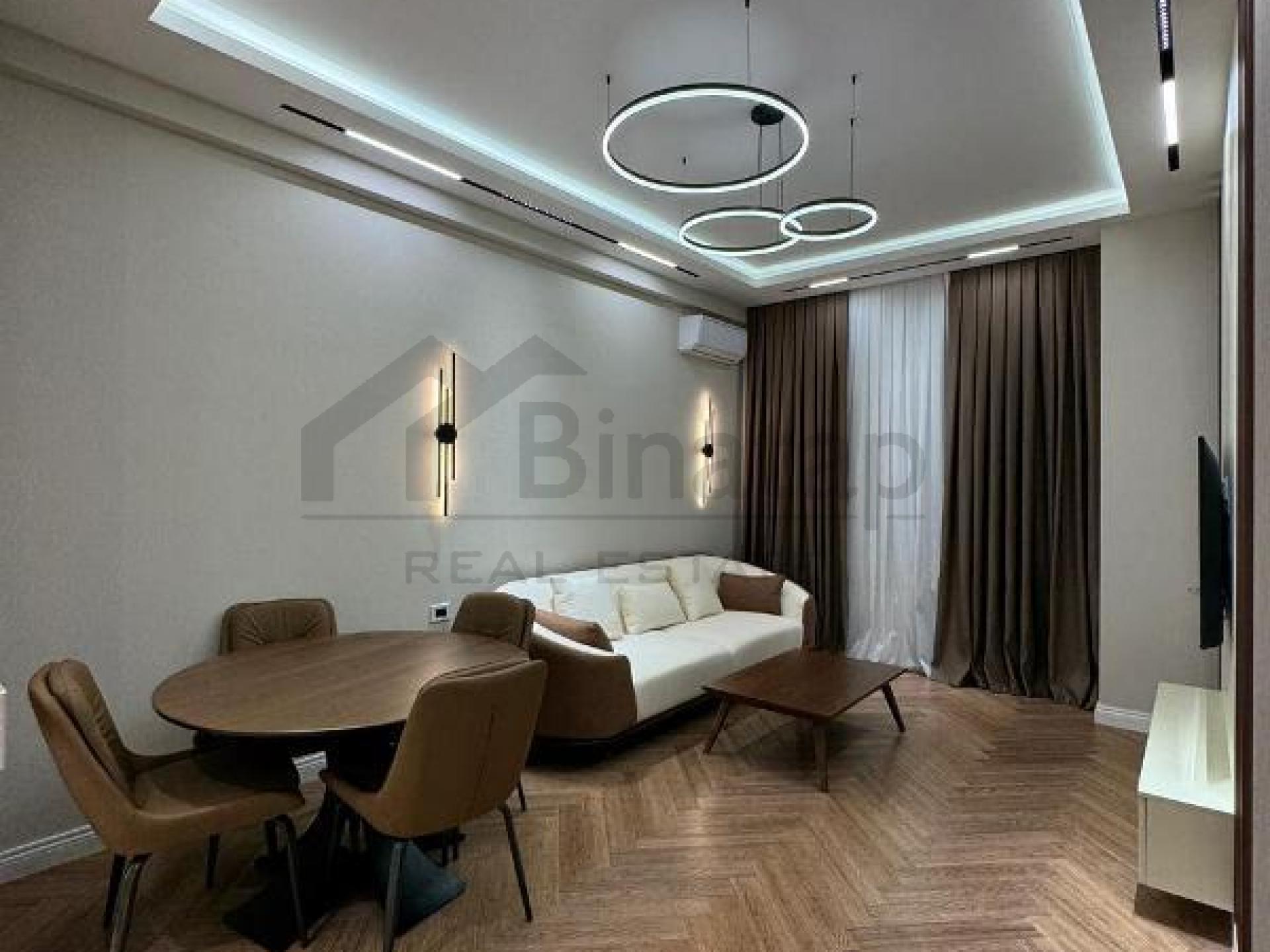 - Təsvir: Təmirdən sonra yaşayış olmayıb. Tam əşyalıdır. Mərkəzi istilik sistemi. Binanın 24 saat mühafizə olunan böyük bağlı həyəti, video müşahidə, səssiz sürətli Kone və Mistubishi liftləri, 3 mərtəbəli yeraltı qarajı, uşaq oyun və futbol meydançası və s. Şirkət haqqı 30%.