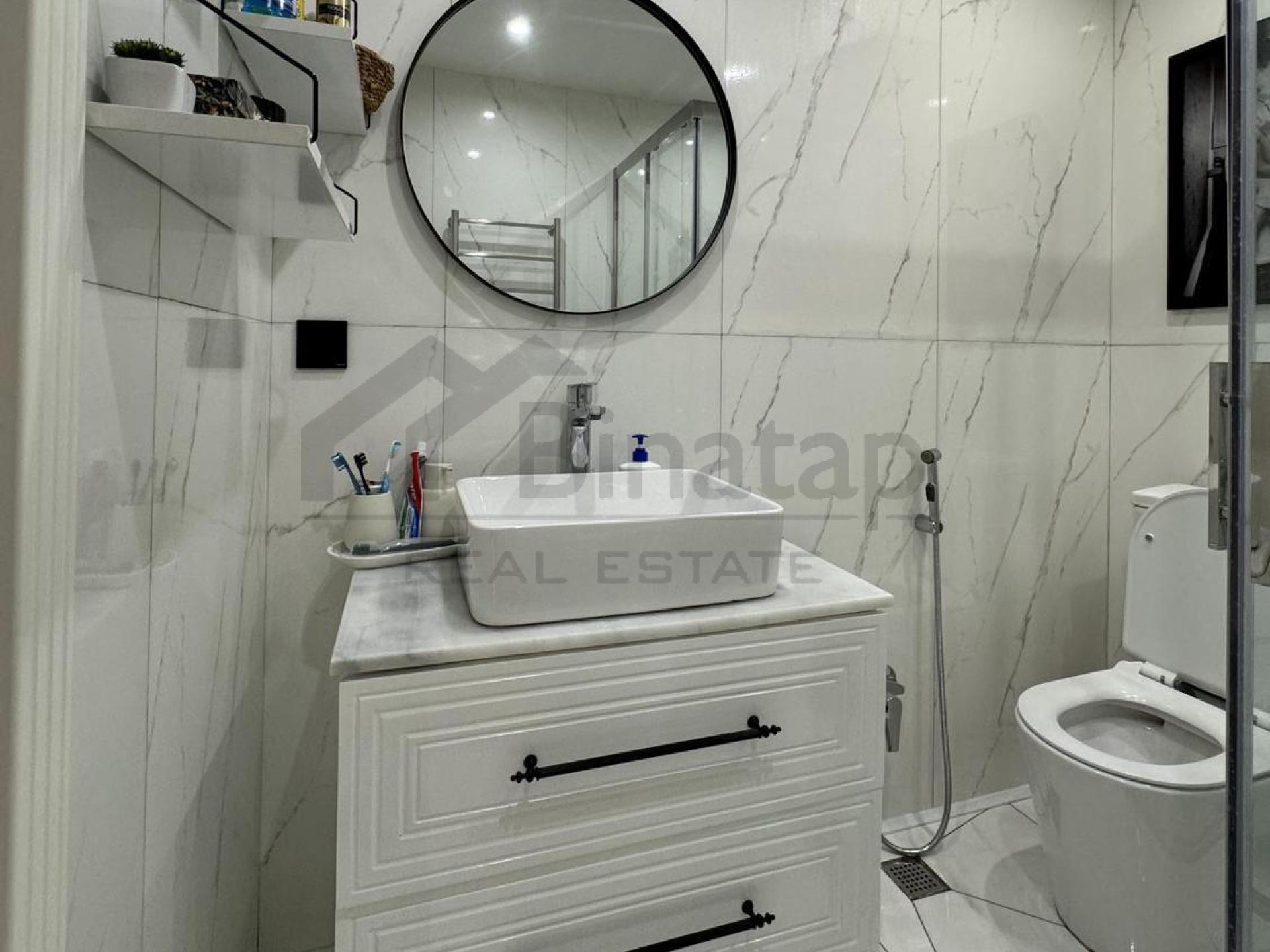 Bakıxanov qəsəbəsində, “Bakıxanov Rezidens” yaşayış kompleksində yerləşən yeni tikili binada 3 otaqlı, əla təmirli mənzil satılır. Mənzil 12 mərtəbəli binanın 9-cu mərtəbəsində yerləşir və ümumi sahəsi 95 m² təşkil edir. Qanuni 2 otaqdan 3 otağa düzəldilmişdir və funksional planlanması ilə seçilir. Mənzil zövqlə və keyfiyyətli materiallarla təmir olunub, gen...