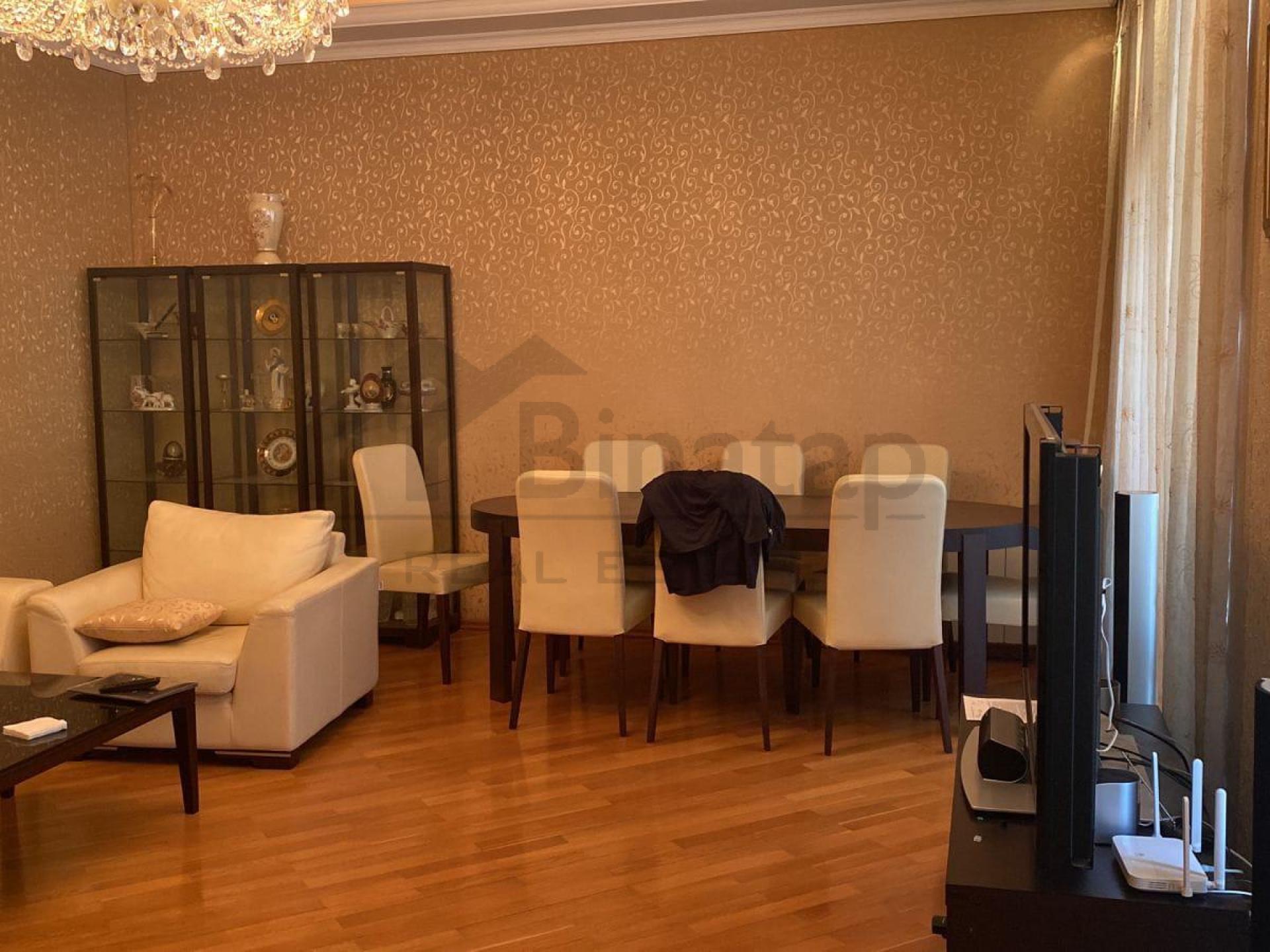 Quraşdırılmış mətbəx mebeli, mətbəx stol və stullar, yataq otağındakı quraşdırılmış dolablar, yataq dəstləri, divan, zaldaki bütün mebellər (divan, 2 kreslo, jurnalniy, böyük stol, 2 ədəd qorka, televizor-ev kinoteatri ), çılçıraqlar.
