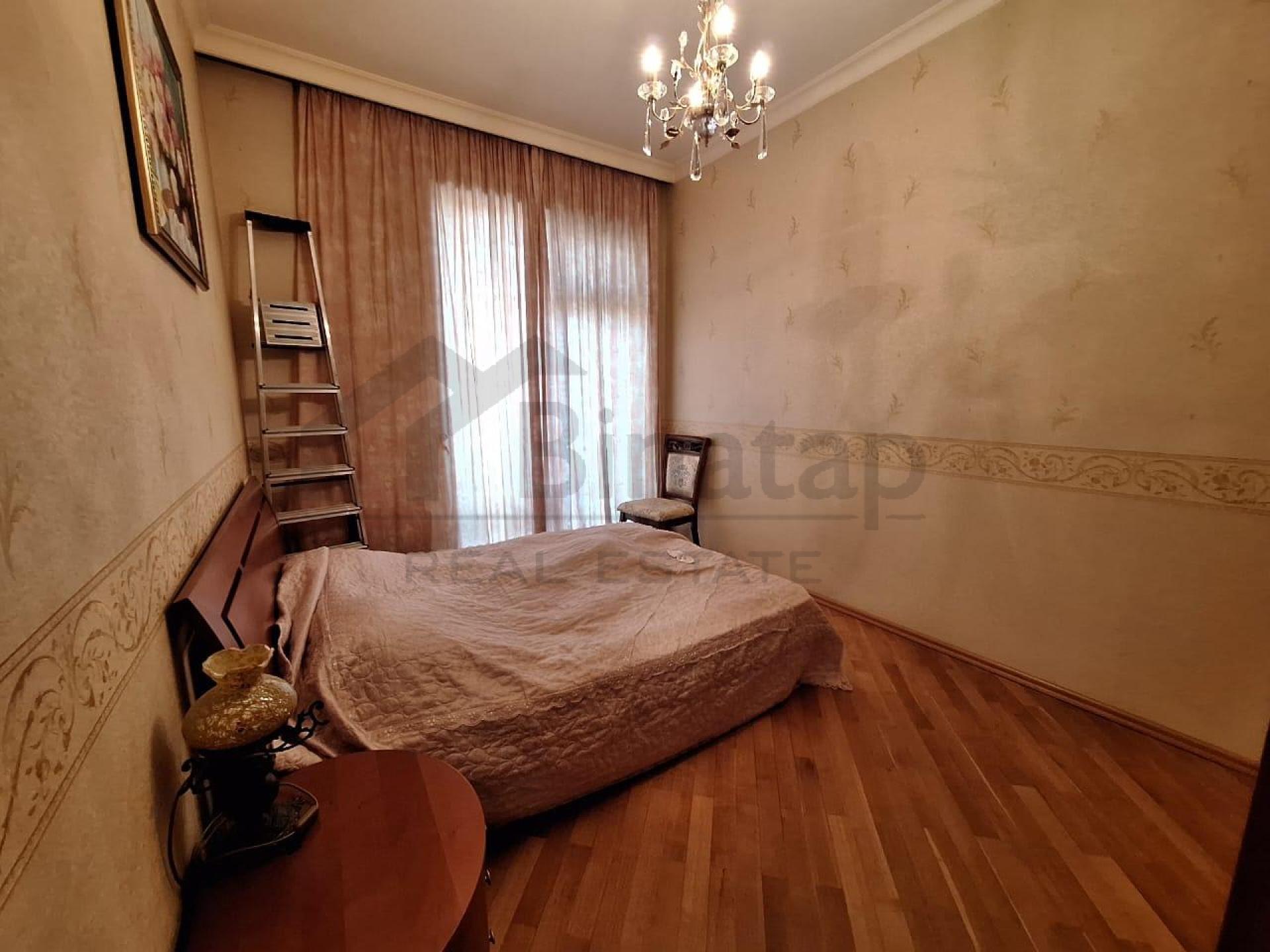 - Təsvir: Keyfiyyətli təmir: döşəmə parket, otaq qapıları (palıd ağacından), plitka İspaniya istehsalı.