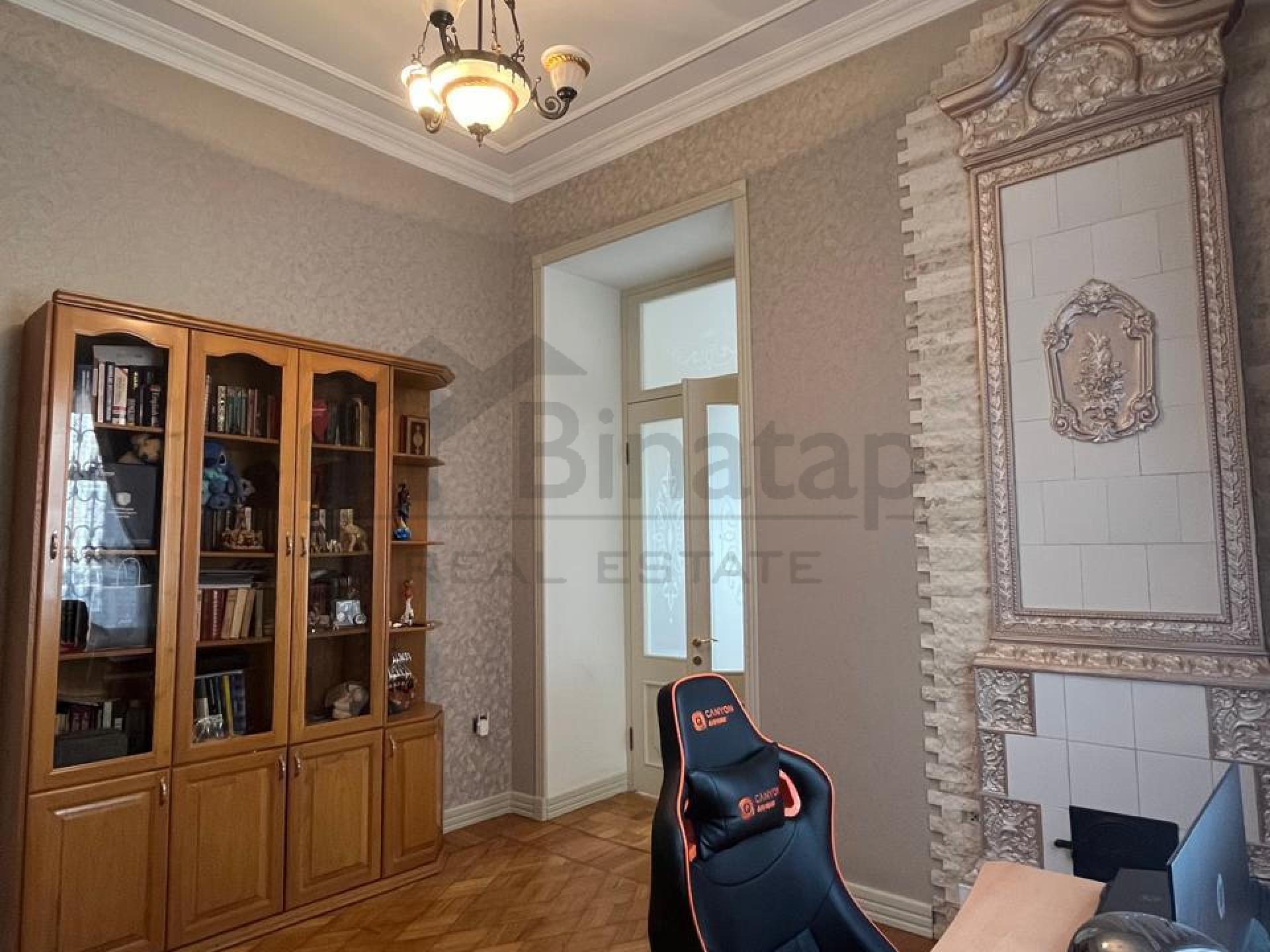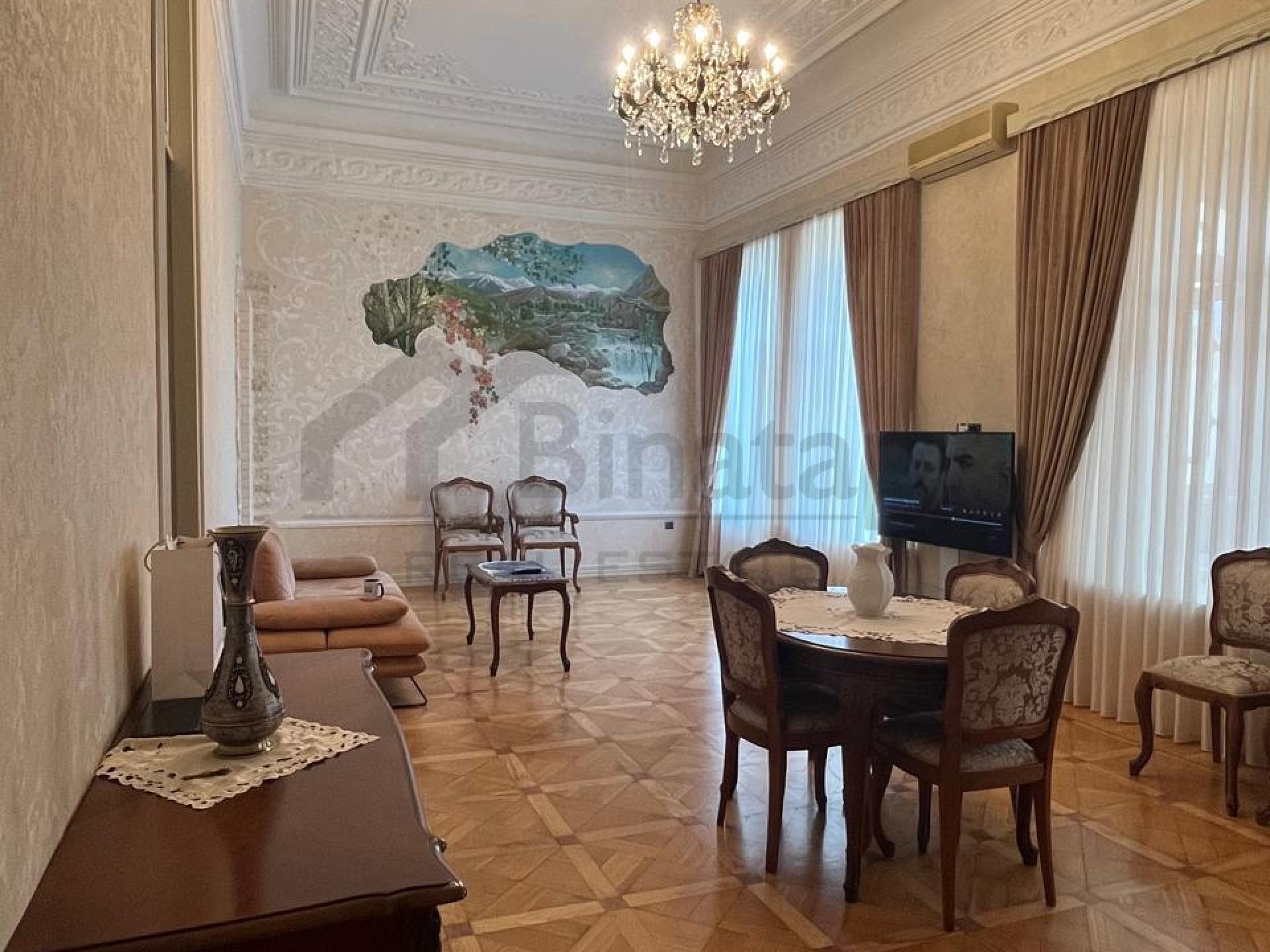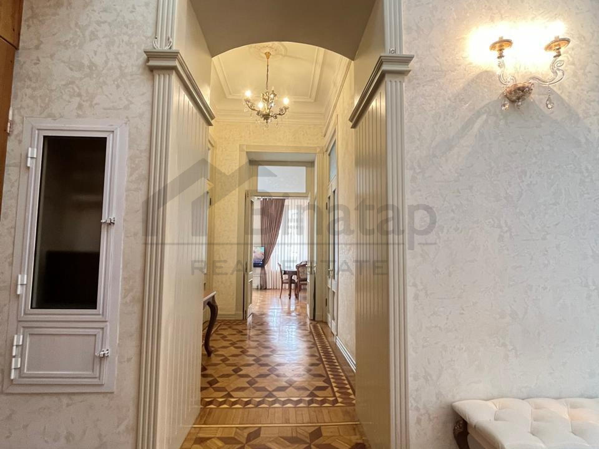 Mənzil memarlıq abidəsi sayılan, cəmi 4 mərtəbəli tarixi binada yerləşir. Yüksək tavanlar, geniş və işıqlı otaqlar interyerdə xüsusi komfort hissi yaradır. Tam yeni və keyfiyyətli təmirdən sonra mənzil yaşayış üçün tam hazır vəziyyətdədir.