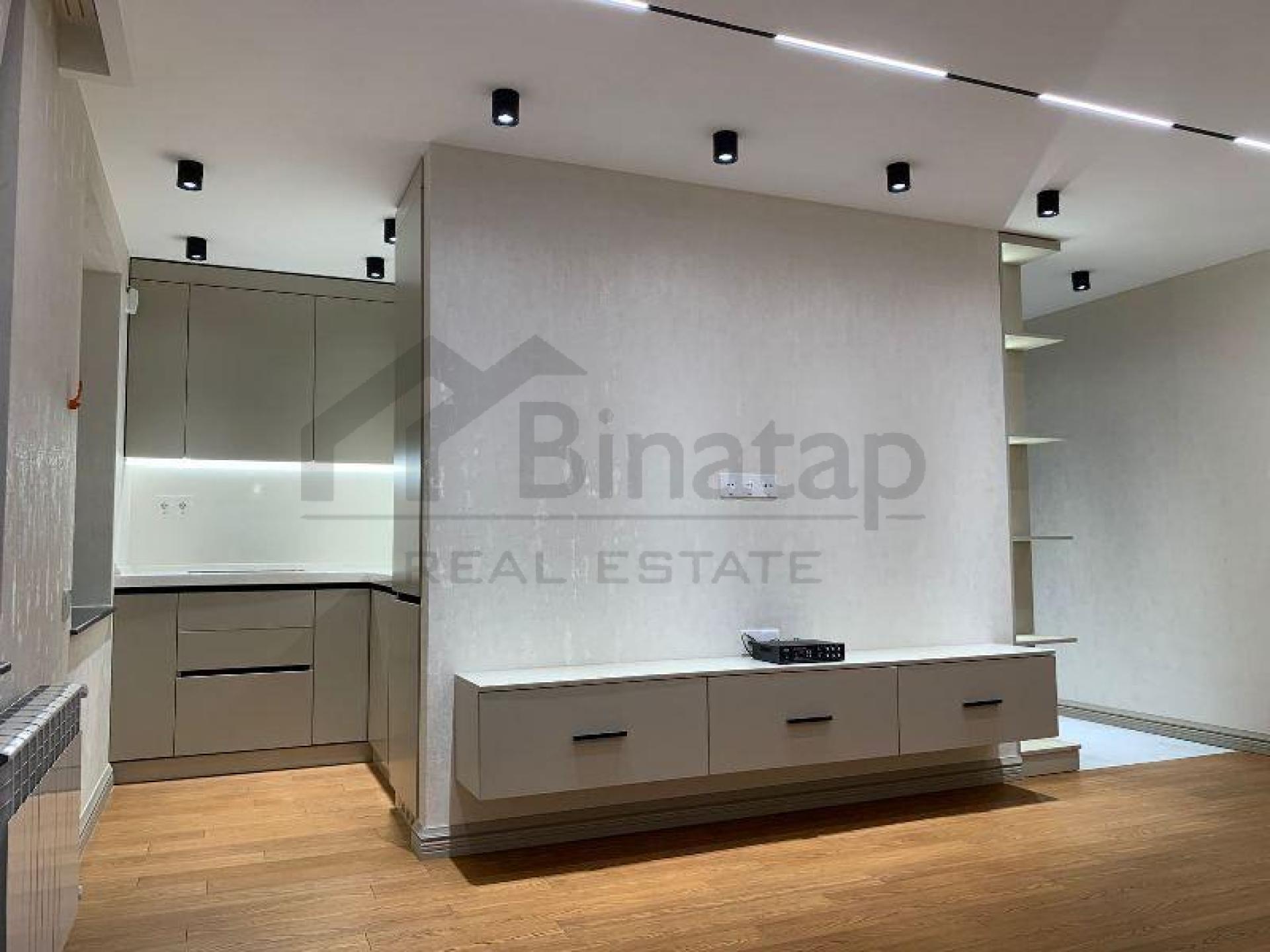 - Təsviri: Dizayner tərəfindən super təmir olunub. Qanuni 2 otaqdır. Yelçəkəndir. Mərkəzi istilik sistemi, pol bambuk parket, oboylar Zambaiti Parati, qarderob, hamam və holda isti poldur, qaz su daimidir, bütün otaqlarda və hamamda individual audiosistem quraştırılıb. Şirkət haqqı 1% (alıcıdan).