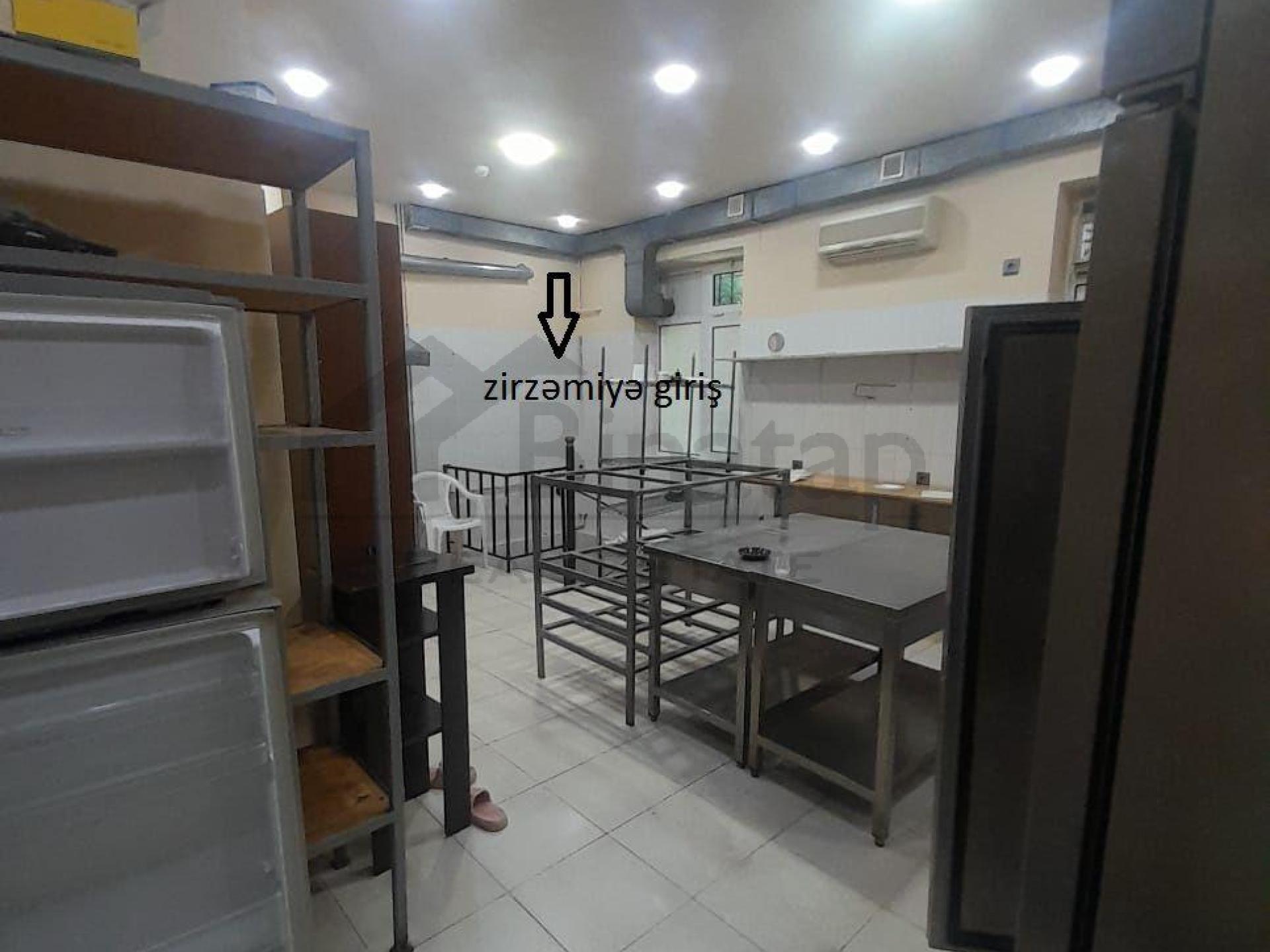 Nəsimi rayonu, (Semoşka) 1 nömrəli xəstəxanın yaxınlığı, Səməd Vurğun və Mirqasımov küçəsinin yaxınlığı, obyekt yaşayış binasının 1-ci mərtəbəsi, giriş zal, zaldan sonra mətbəx, mətbəxdən zirzəmiyə keçiddir.əlavə olaraq blokada giriş vardır.əvvəl şirniyyat sexi və mağazası olmuşdur. Böyük soyuducu və vitrin köhnə icarəçiyə məxsusdur.istəyən pulun verib alar.istəyən olmasa götürüləcəkdir. 3 faza işığı vardır. qaz yoxdur. Digər əşyalar obyekt yiyəsinə məxsusdur. 3 zal var hər birində kondisoner vardır. 2 zal 1-ci mərtəbədədir.təxmini 70kv, 1 zal zirzəmi hissəsindədir. 40kv təxmini. Başqa profilədə istəyən olsa müraciət edə bilərlər. artıq əşyaları çıxardarıq 110 kv 2300azn icarəyə verilir